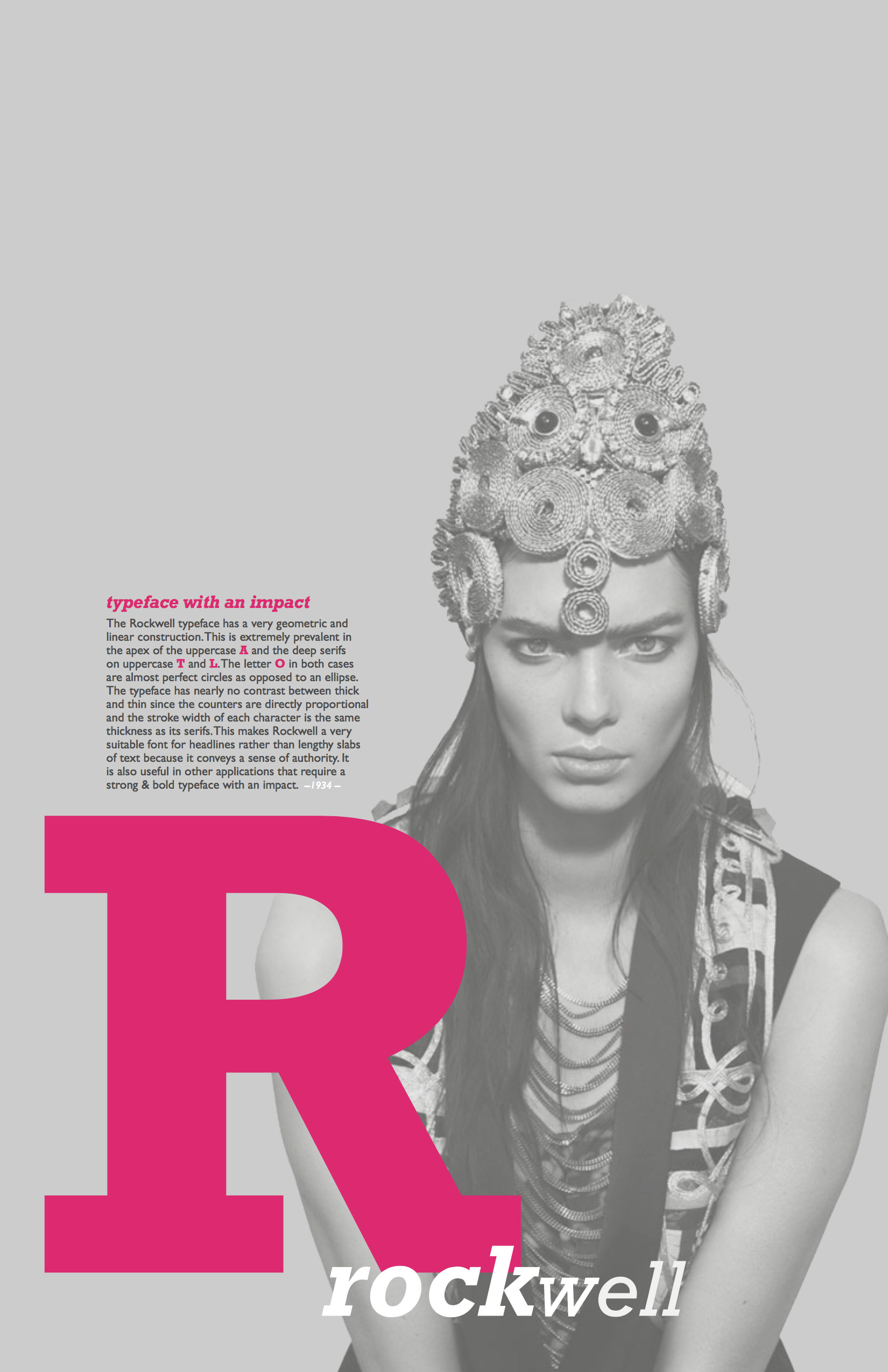 This is a poster designed to inform viewers about the idiosyncrasies of the Rockwell typeface.